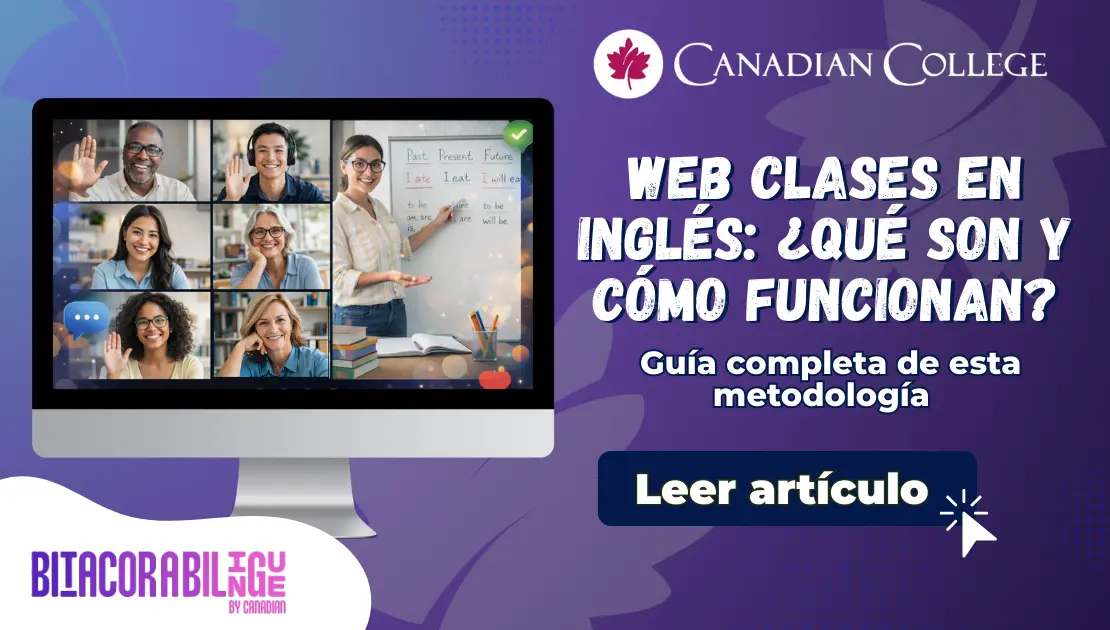 La tecnología está ahí para facilitarte la vida y hacer el aprendizaje más accesible. Las web clases representan la evolución del aprendizaje virtual: flexible, humano y eficiente. En Canadian College, hemos diseñado una metodología moderna pensada para quienes no quieren elegir entre su vida profesional y su sueño de ser bilingües. Vive la experiencia de las web clases en Canadian College y aprende inglés con una metodología moderna y pensada para ti.